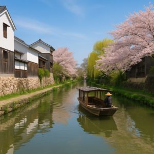 近江八幡の魅力は、歴史的な建物や町並みにとどまりません。八幡山からの眺めはまさに絶景。ロープウェーで山頂まで登ると、広がるのは琵琶湖や近江盆地の美しい風景です。特に、春の新緑や秋の紅葉の時期には、息をのむような風景が広がります。また、水郷めぐりも人気で、手こぎ舟で静かな運河を進みながら、自然と調和した町の風景を楽しむことができます。心地よい風とともに、古き良き時代の面影が残るこの場所を感じることができます。